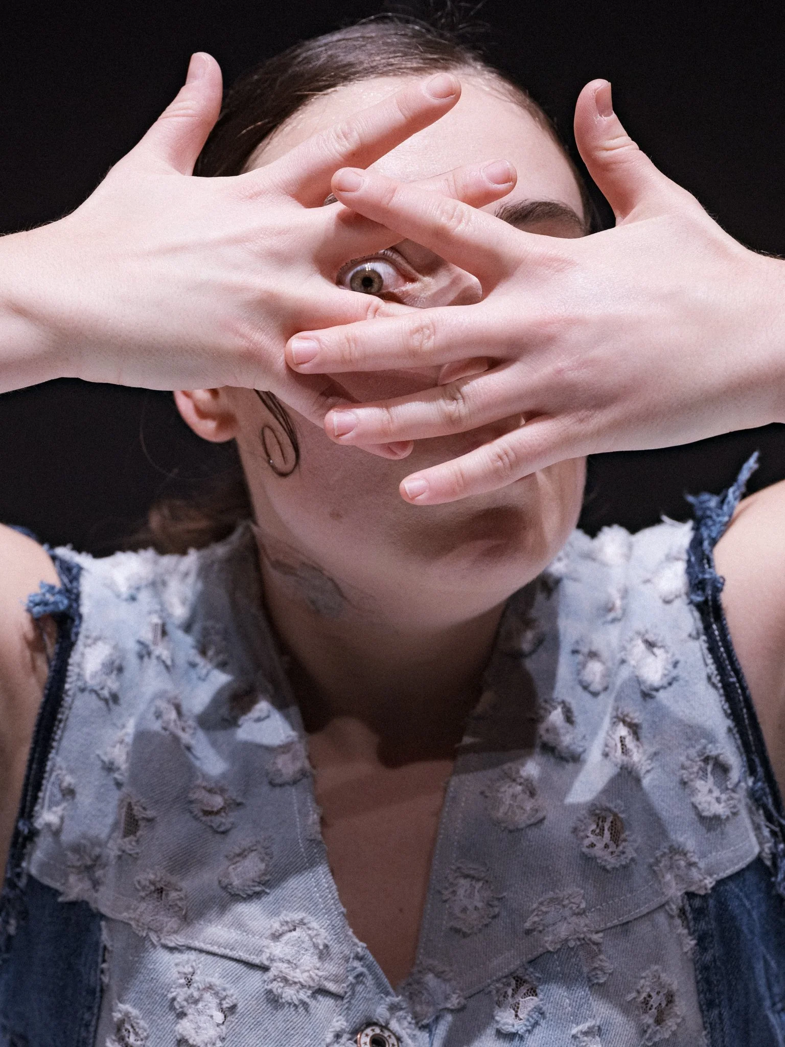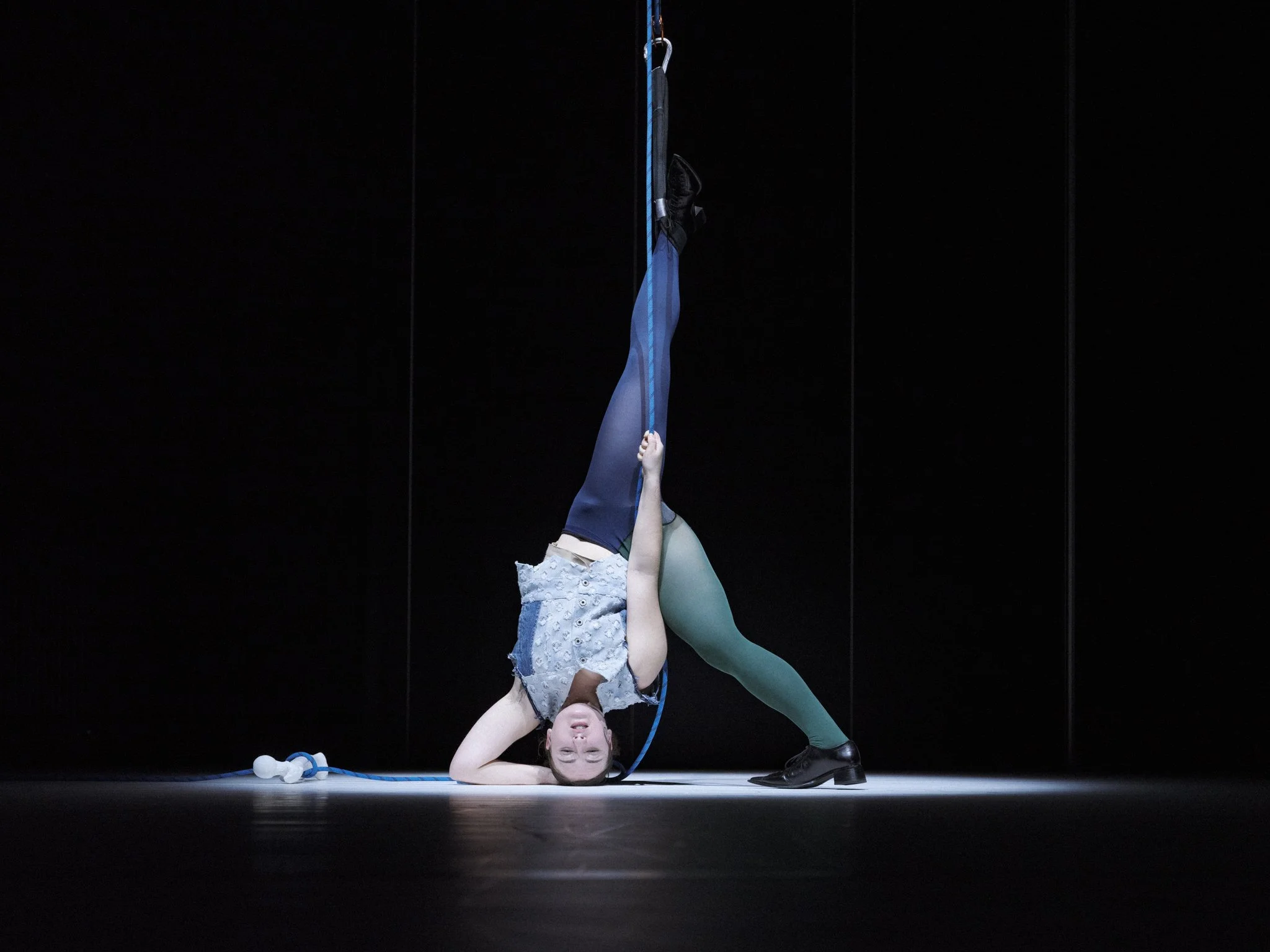 In the solo Shield is a Weapon, the boundary between inside and outside, between the self and the other is choreographically explored through movement, vocal soundscapes, and text. The mouth becomes both a shield and a gate, which, once opened, speaks in many tongues and expresses the polyphony of the individual subject.